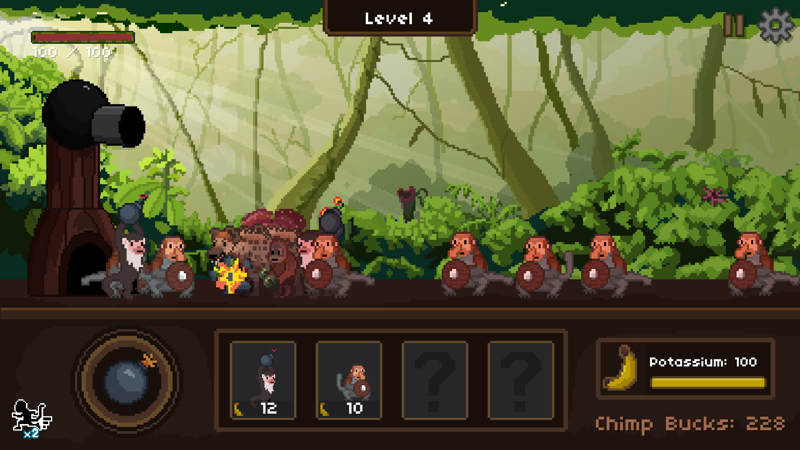 - Build a gigantic army of tank monkeys. They will protect your longer-ranged companions and delay enemy advancement.